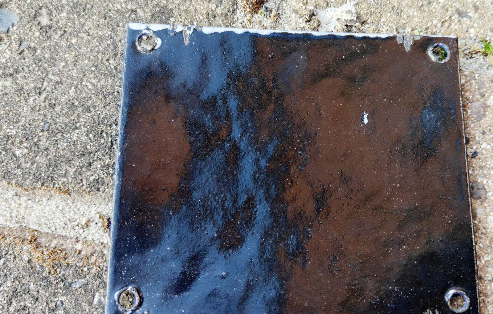 Holbæk Appelsinvand kasseskilt i jernblik. Squash