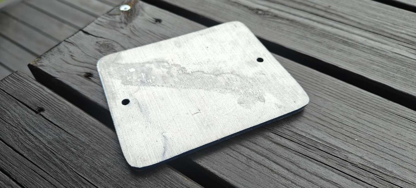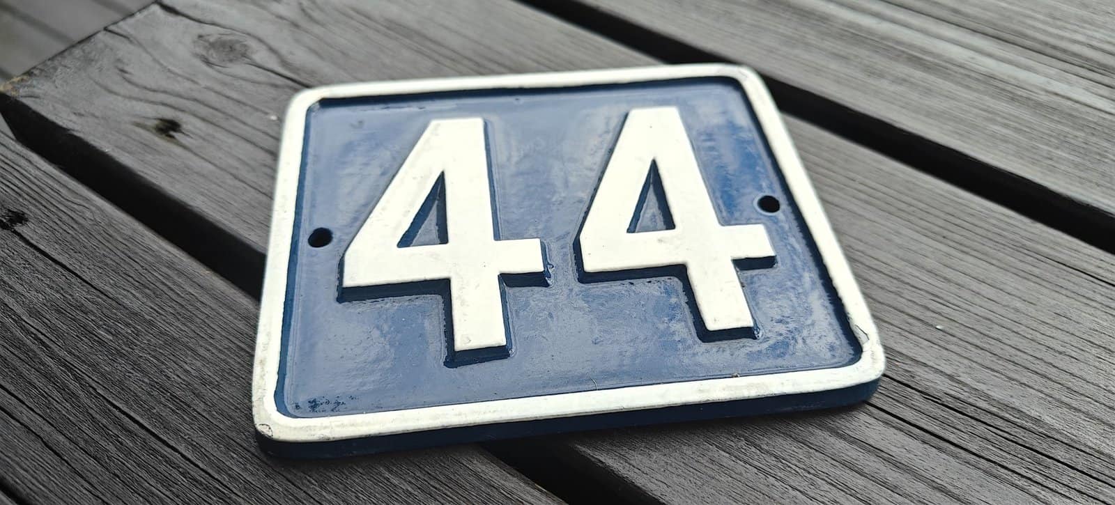 Stort dobbeltsidet messingskilt med ordet “LUKKET” på hver side