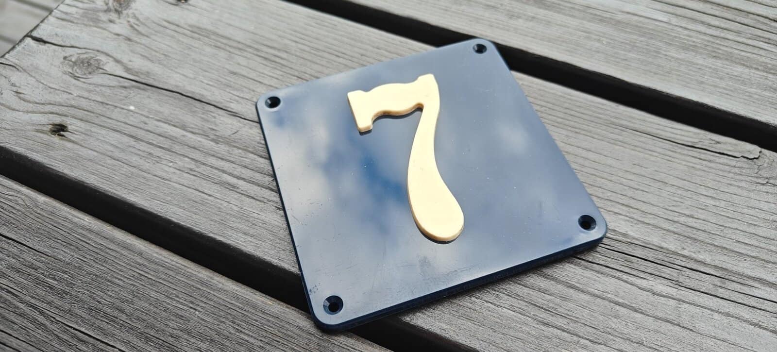 Husnummer – 7. AGA. Hård plast. Cirka 40-50 år gammelt