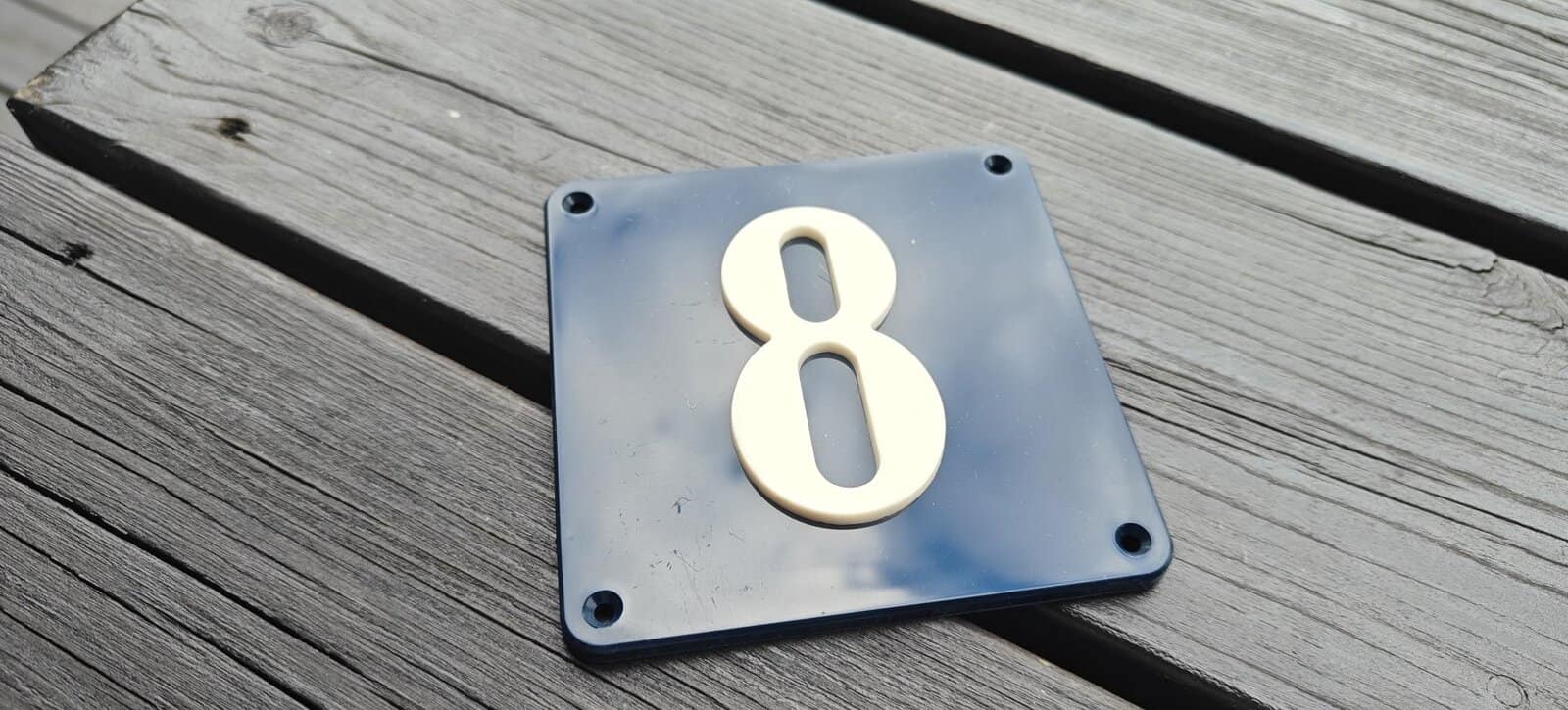 Husnummer – 8. AGA. Hård plast. Cirka 40-50 år gammelt