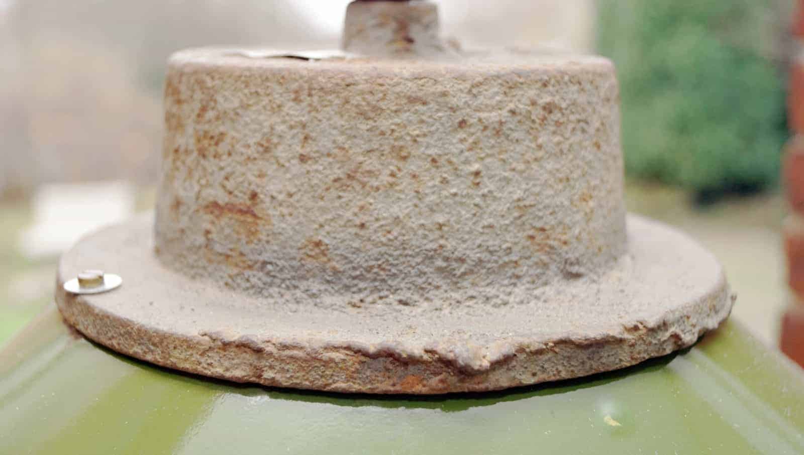 Måler cirka 30cm i diameter. Fed patina med det rust og buler som det indfatter. Fra en fabrik i det gamle kommunistiske Østeuropa.