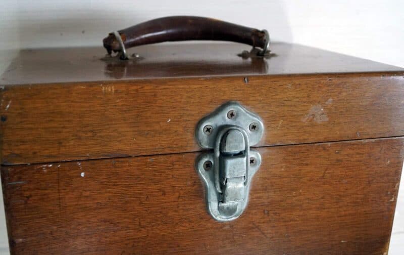 Super lækker kasse. Godt hårdværk. Massiv, med lækkert hængsel og læderhåndtag.