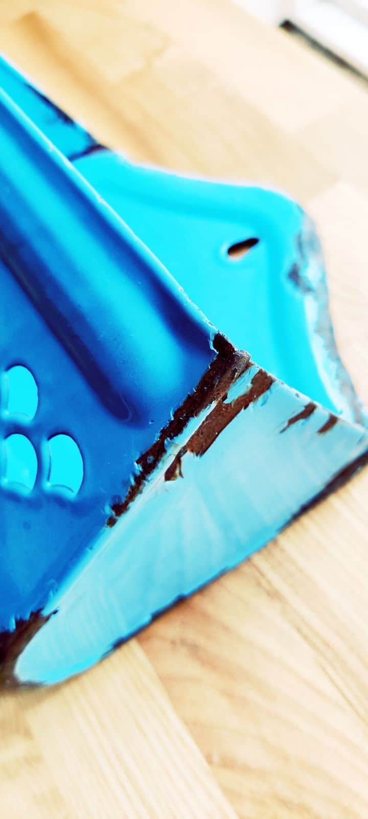 Gammel emaljeret form, lyseblå rund med stjernemønster