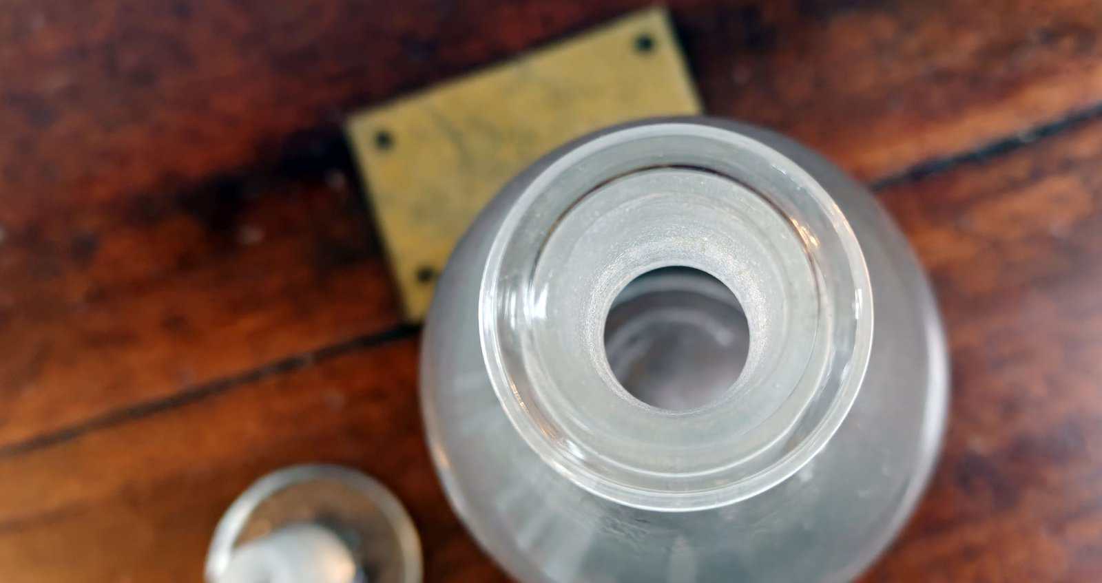 Glaskanyle med bakelit fra C. Boel Nilesen. Districtsjordmoder Vegger telefon 33