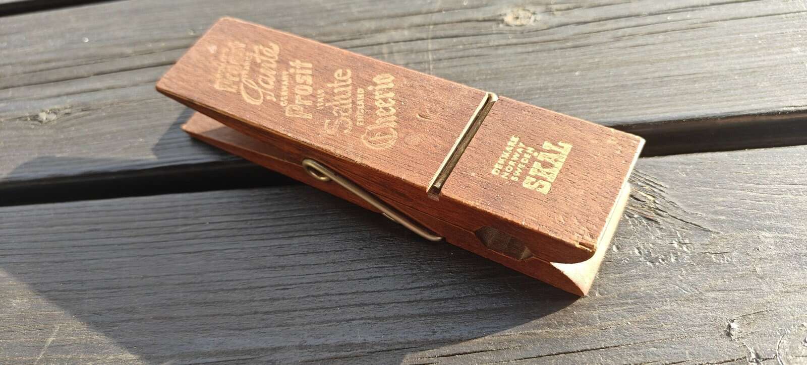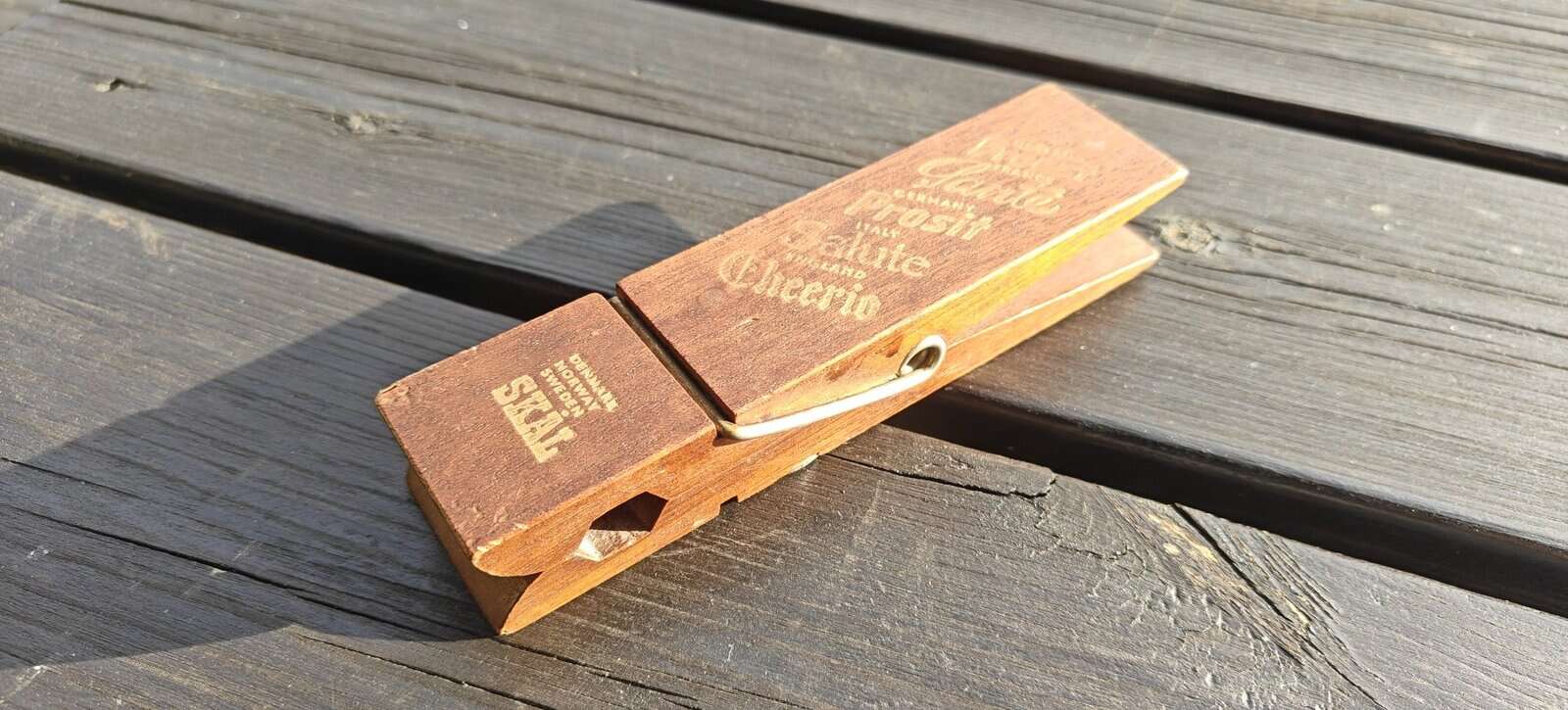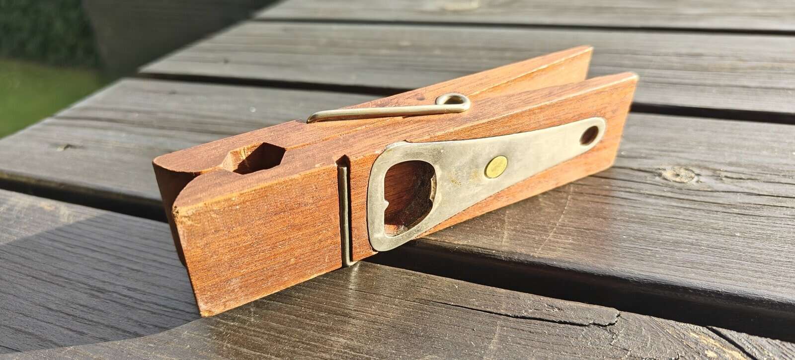 Klemme og oplukker i en. Teaktræ. Skål!