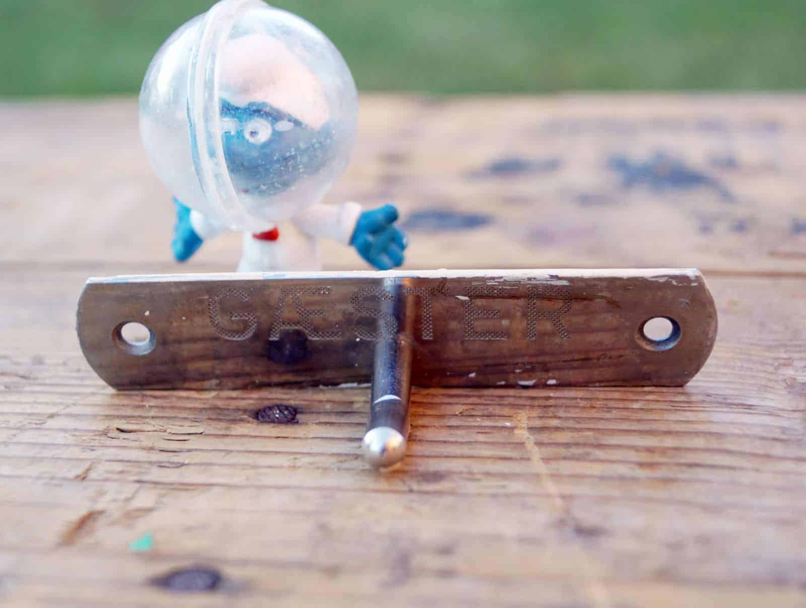 Lille knage af ældre dato. Lidt malingrester langs kanten fra dens tidligere liv. Kan nemt fjernes med negl.