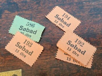 Gamle adgangsbilletter fra et Søbad, 15 øre