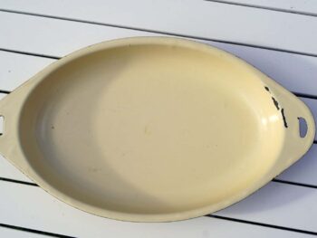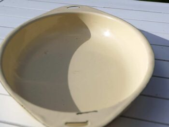 Gammel emaljeret form, lyseblå rund med stjernemønster