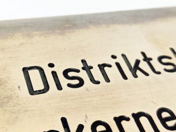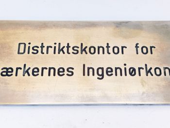 Distriktskontor for Elværkernes Ingeniørkontor skilt i massiv forniklet messing