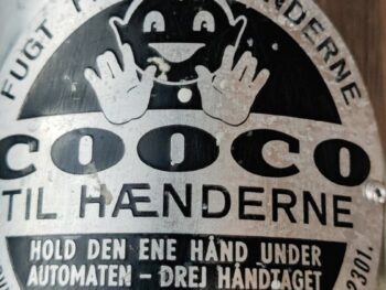 Cooco til hænderne. Sæbedispenser med blikskilt
