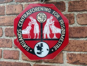 Sjællands Centralforeningen for frisørmestre. Glasskilt