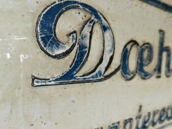 Dæhnfeldt Frø – Blikskilt. Celludan 25 x 68 cm
