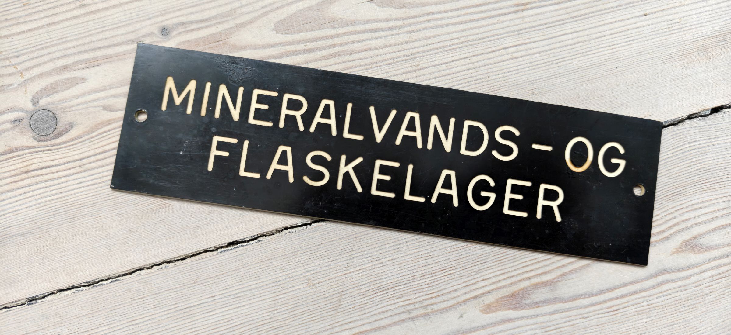 Mineralvands- og flaskelager. Skilt