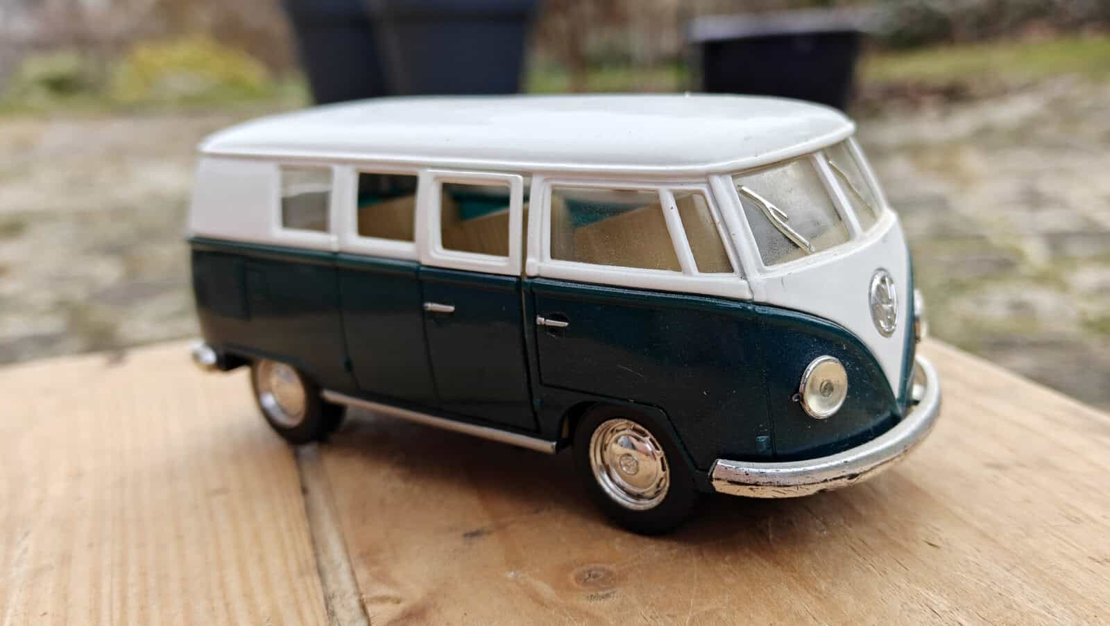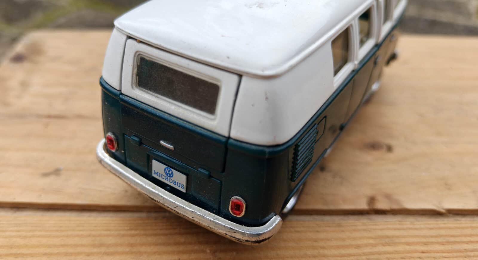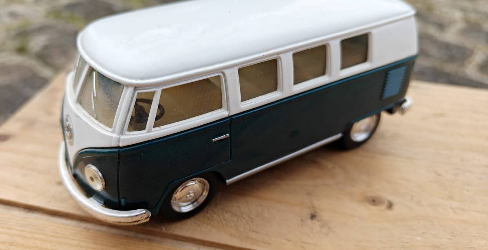 Model af VW rugbrødsbus fra 1962. Har været brugt som reklamegave i 00erne