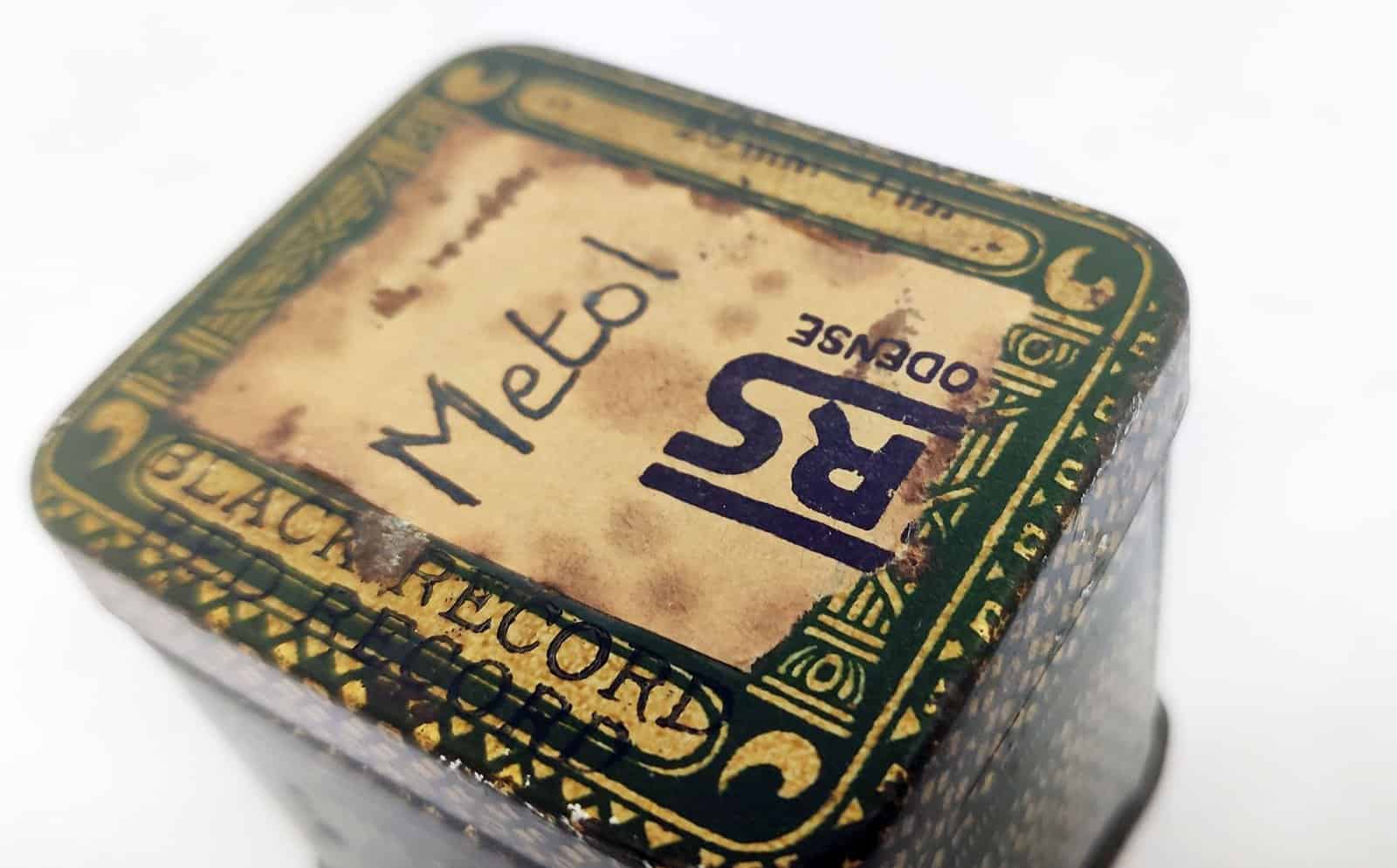 Stempelpude i blikdåse fra Jonh R. Hanson Stempelfabrik og Gravør anstalt