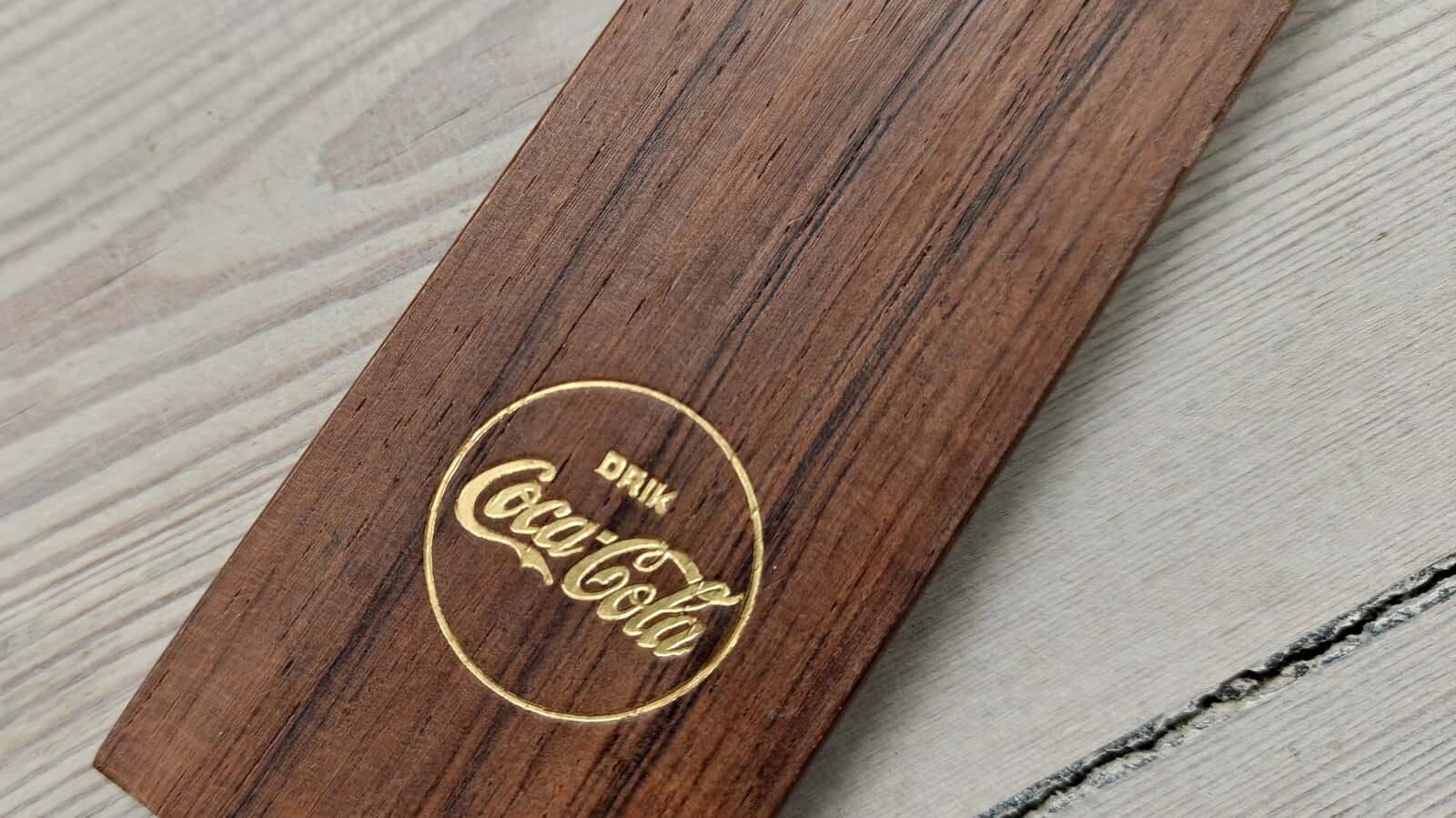 Oplukker. Dansk Reklame for Coca Cola og Fanta. Midt Century Modern. Palistander