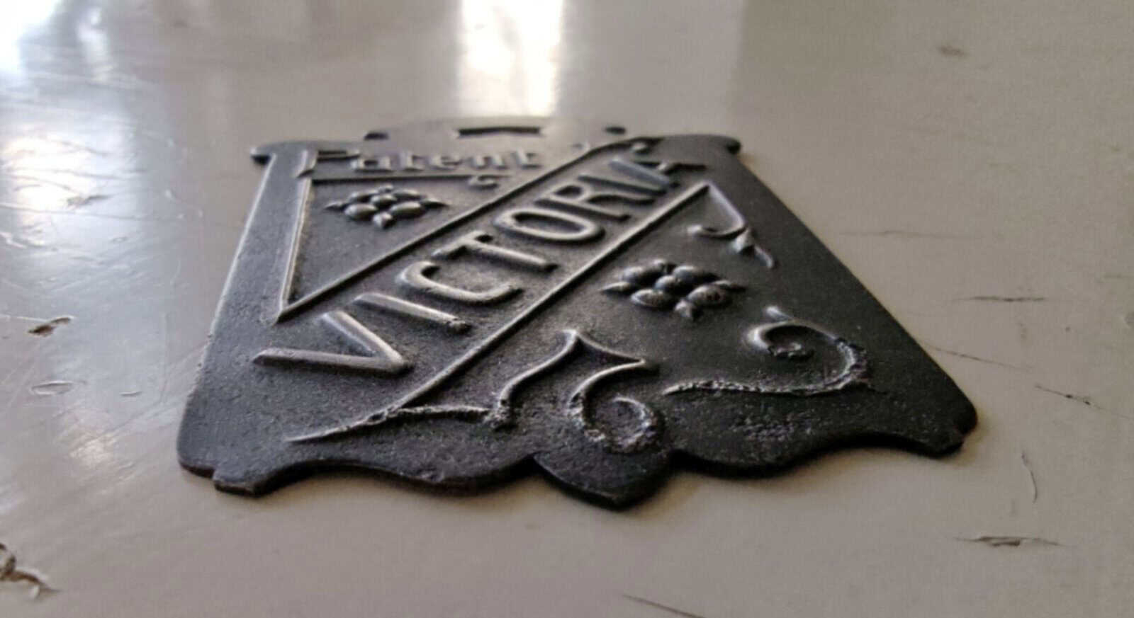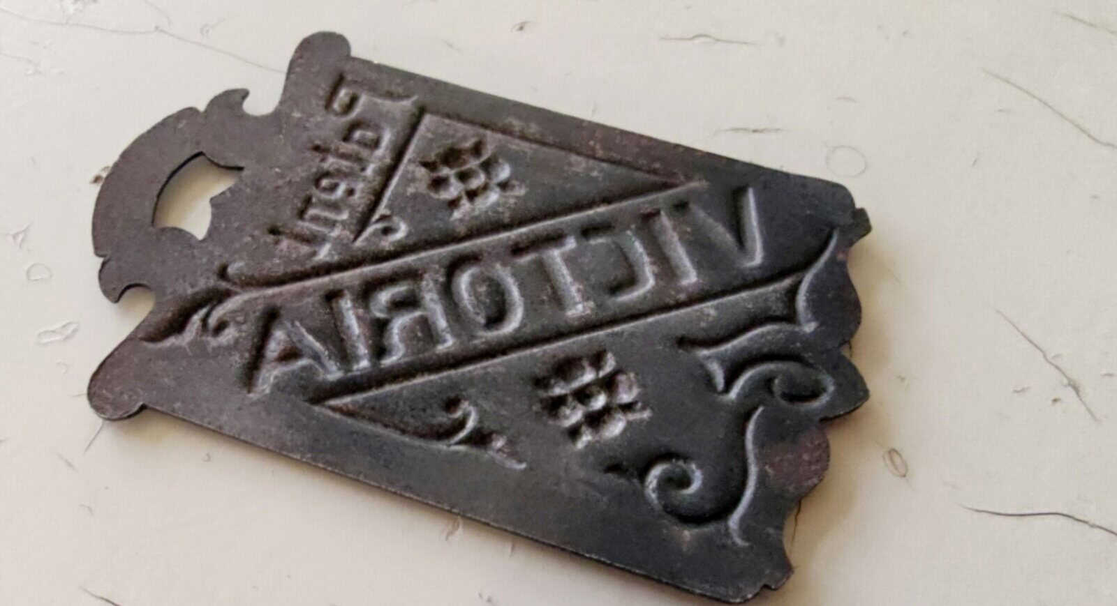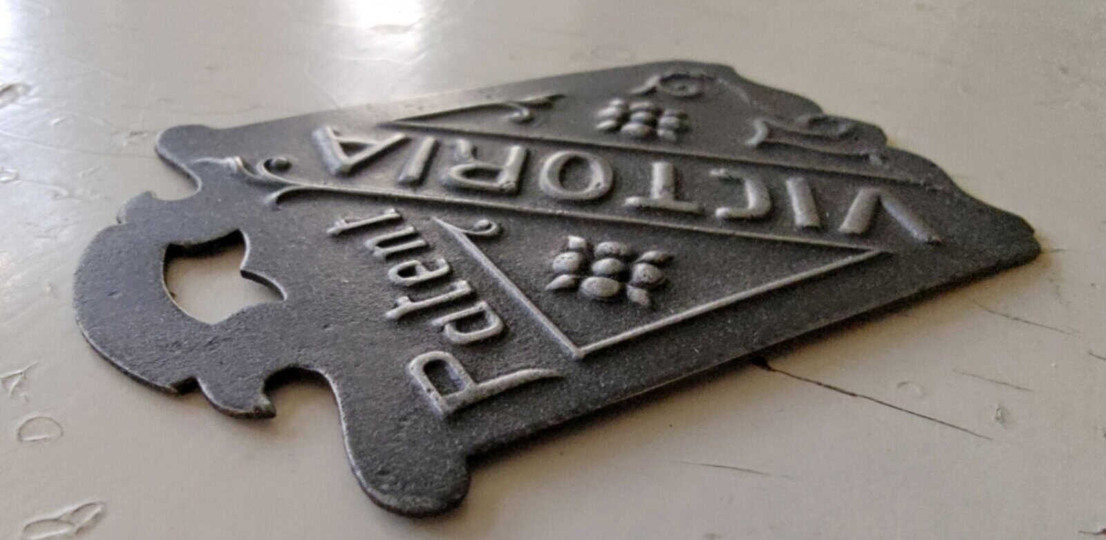 Tudse gammelt metalskilt. Formentlig sen-1800-tallet.