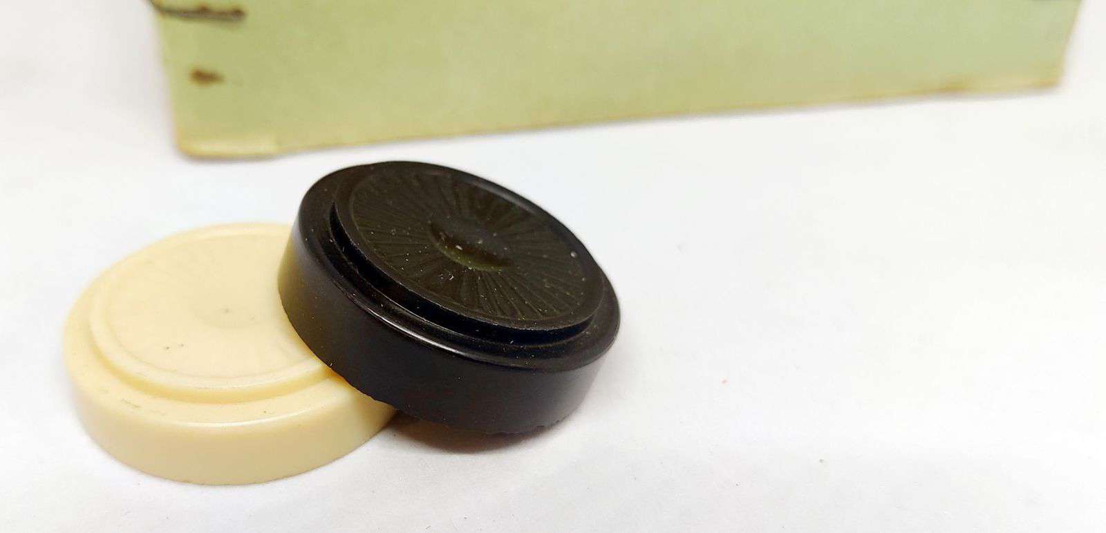 Gamle dam- eller møllebriker. Komplet, i hård plast i original æske. Til ham eller hende som bare synes Dam er for fedt (og det er det!) og gerne vil spille med stil