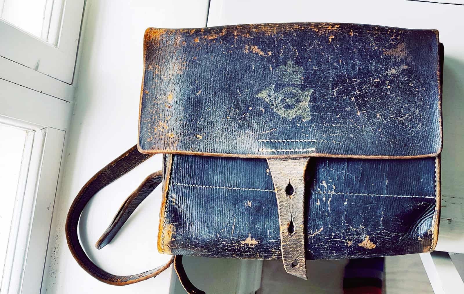Gammel lækker taske i rigtig pæn stand, når man tænker på at alt det den nok har været igennem. Kan sagtens bruges. Måler cirka 33 bred og 28 cm høj.