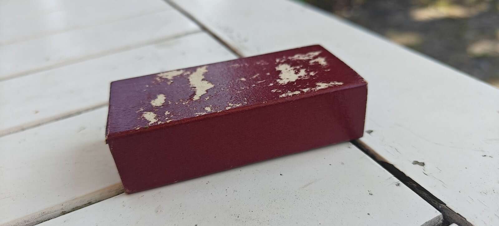 Indsamlingsbøtte. Rød. Brødremeninghedens Danske Missionsforening (BDM) i Christiansfeldt