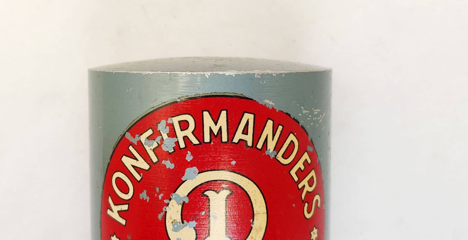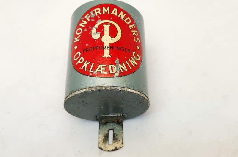 Super fed og dekorativ gammel indsamlingsbøsse, hvor man kunne donere til propforeningen som samlede penge ind til konfirmanttøj, til dem som ikke selv havde råd.