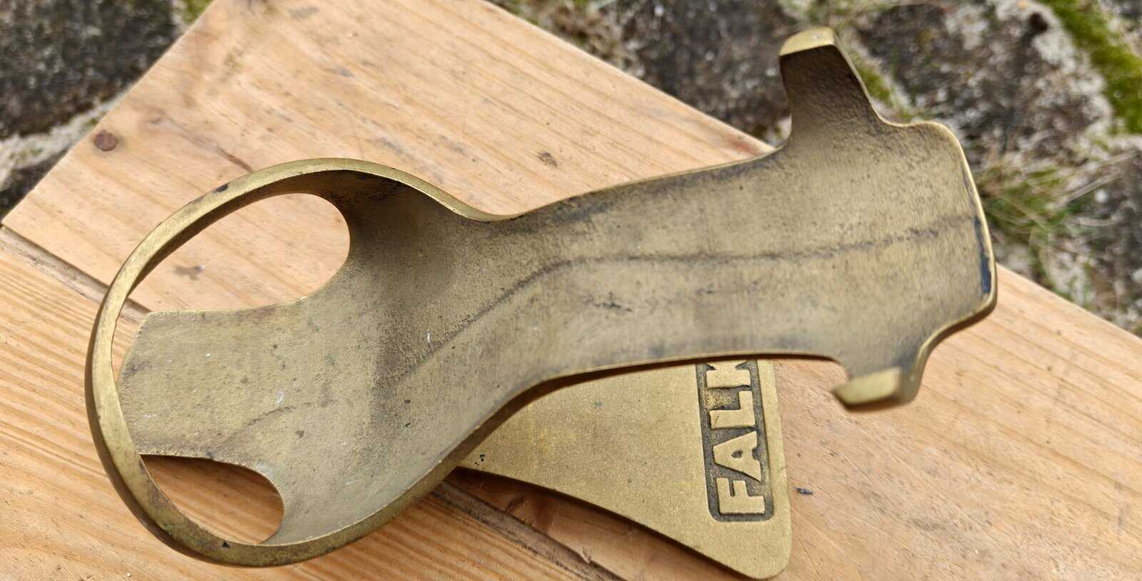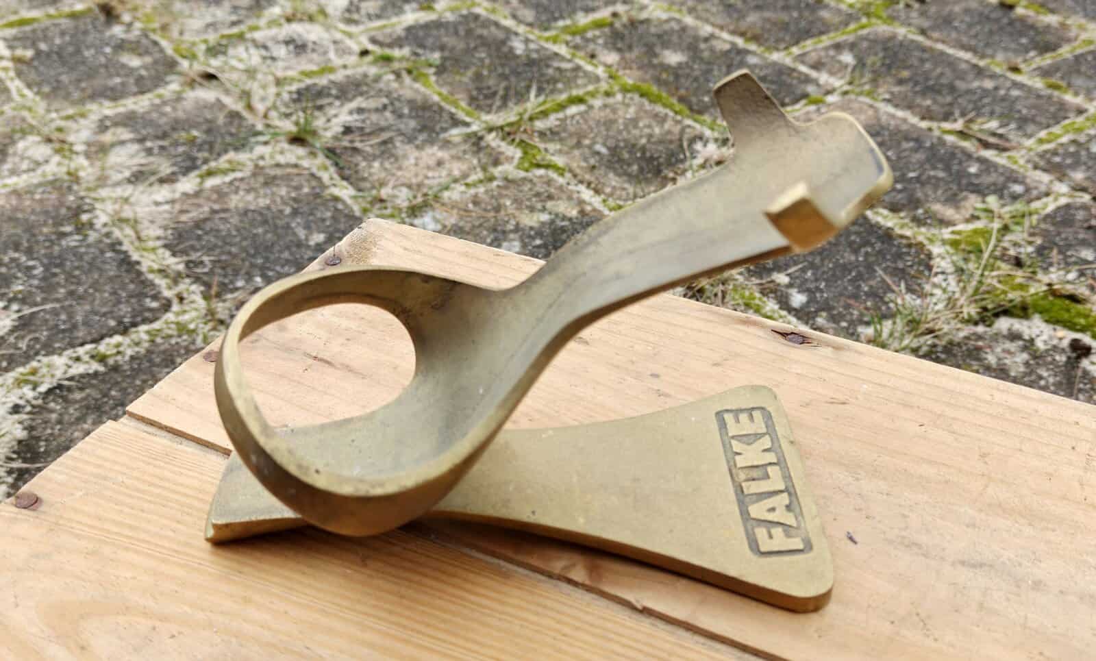 Flot og gammelt skoreklame-udstillings-holder fra skofirmaet falke, som blev etableret i 1895. https://www.falke.com/uk_en/company/history/