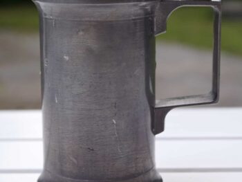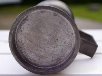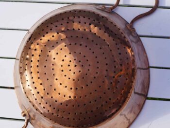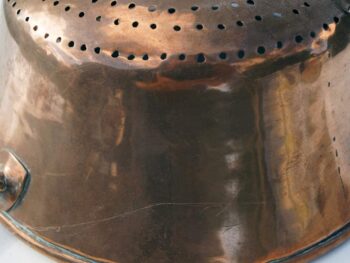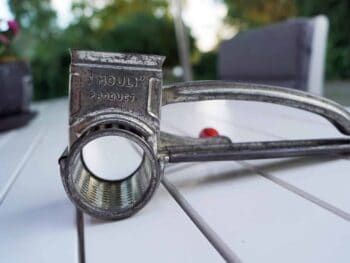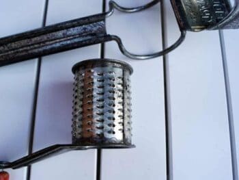 Grønsagsmølle i blik og med gult plastikhåndtag
