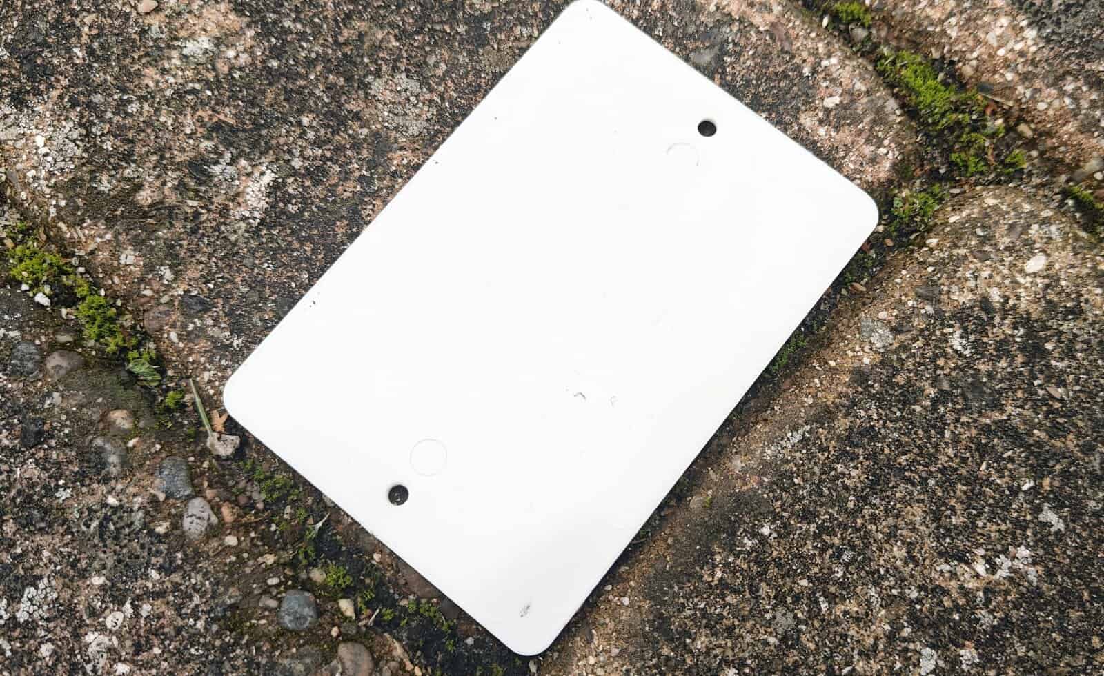 Holbæk Appelsinvand kasseskilt i jernblik. Squash