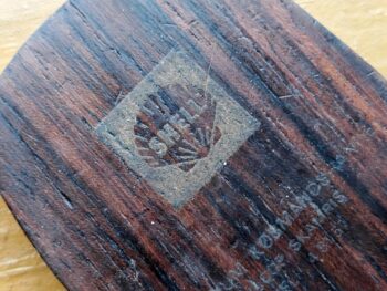 Ældre reklame for Shell Benzin. Med vædder på bagsiden.