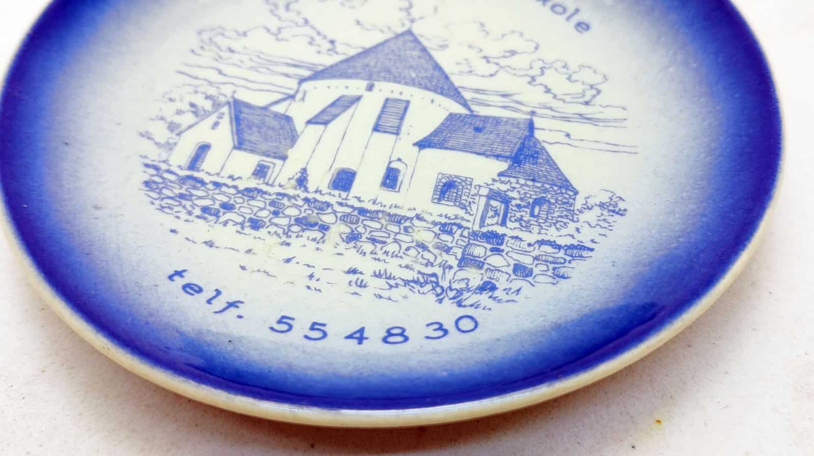 Sjov lille platte / tallerken med reklame for en køreskole på Bornholm