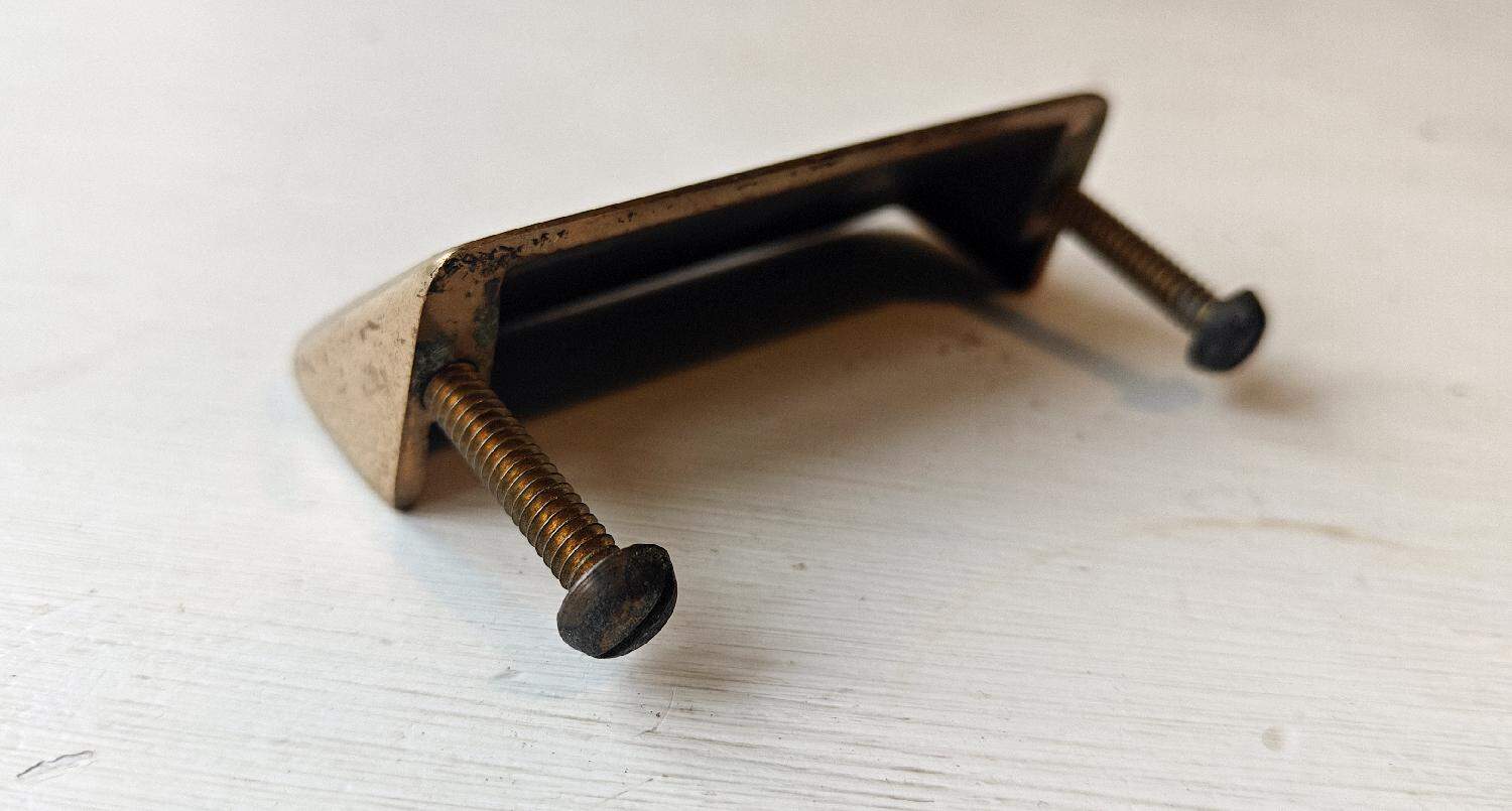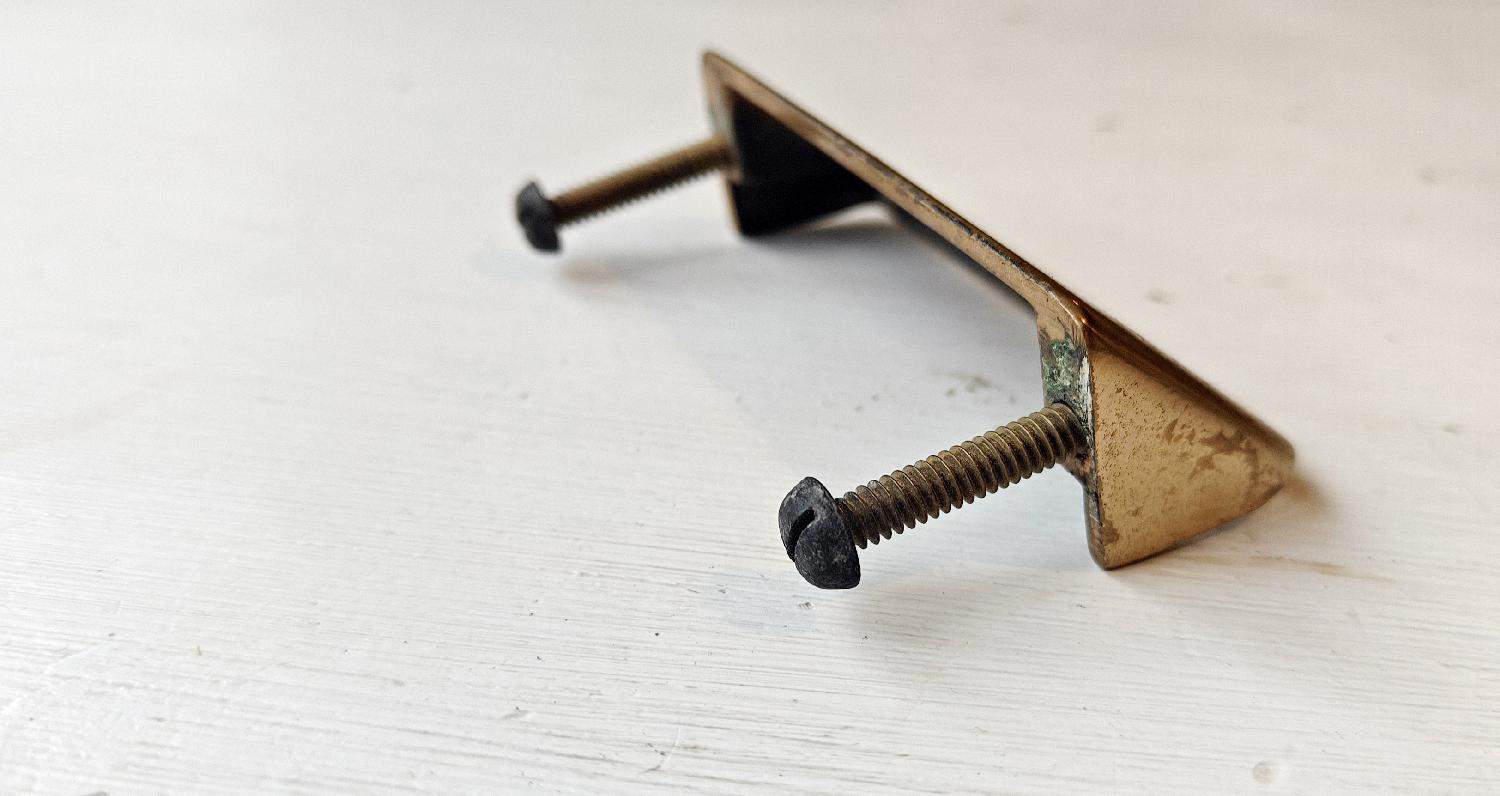 Grønsagsmølle i blik og med gult plastikhåndtag