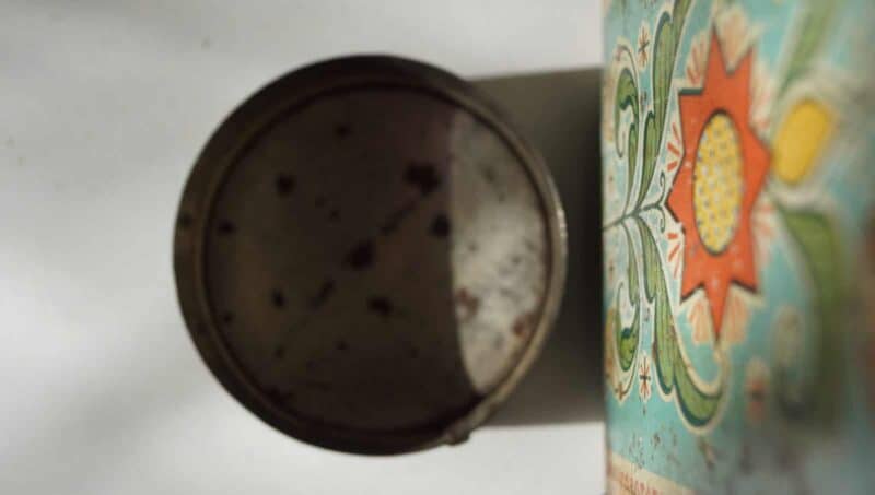 Flot gammel blikdåse fra Solo, til Havregryn. lidt rust indeni, men kan stadig bruges – dog nok ikke til havregryn uden et rengøring