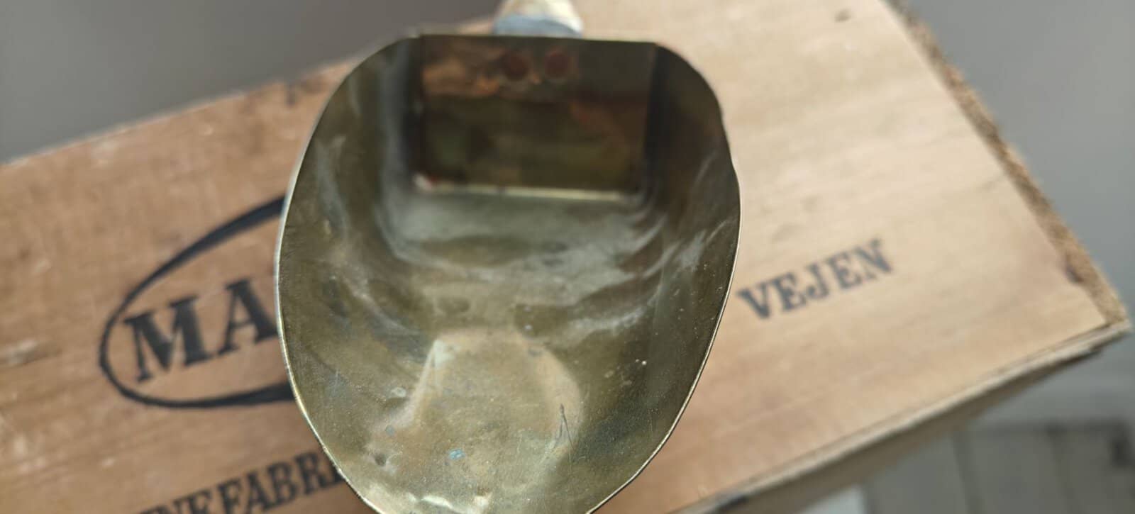 Gammel emaljeret form, lyseblå rund med stjernemønster