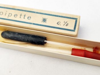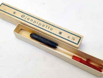 Glaskanyle med bakelit fra C. Boel Nilesen. Districtsjordmoder Vegger telefon 33