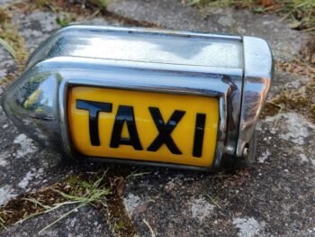 Fedt gammelt taxi-skilt, ombygget til almindelige fatning så den kan bruges som lampe. Ny LED pære medfølger.
