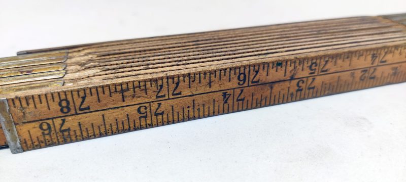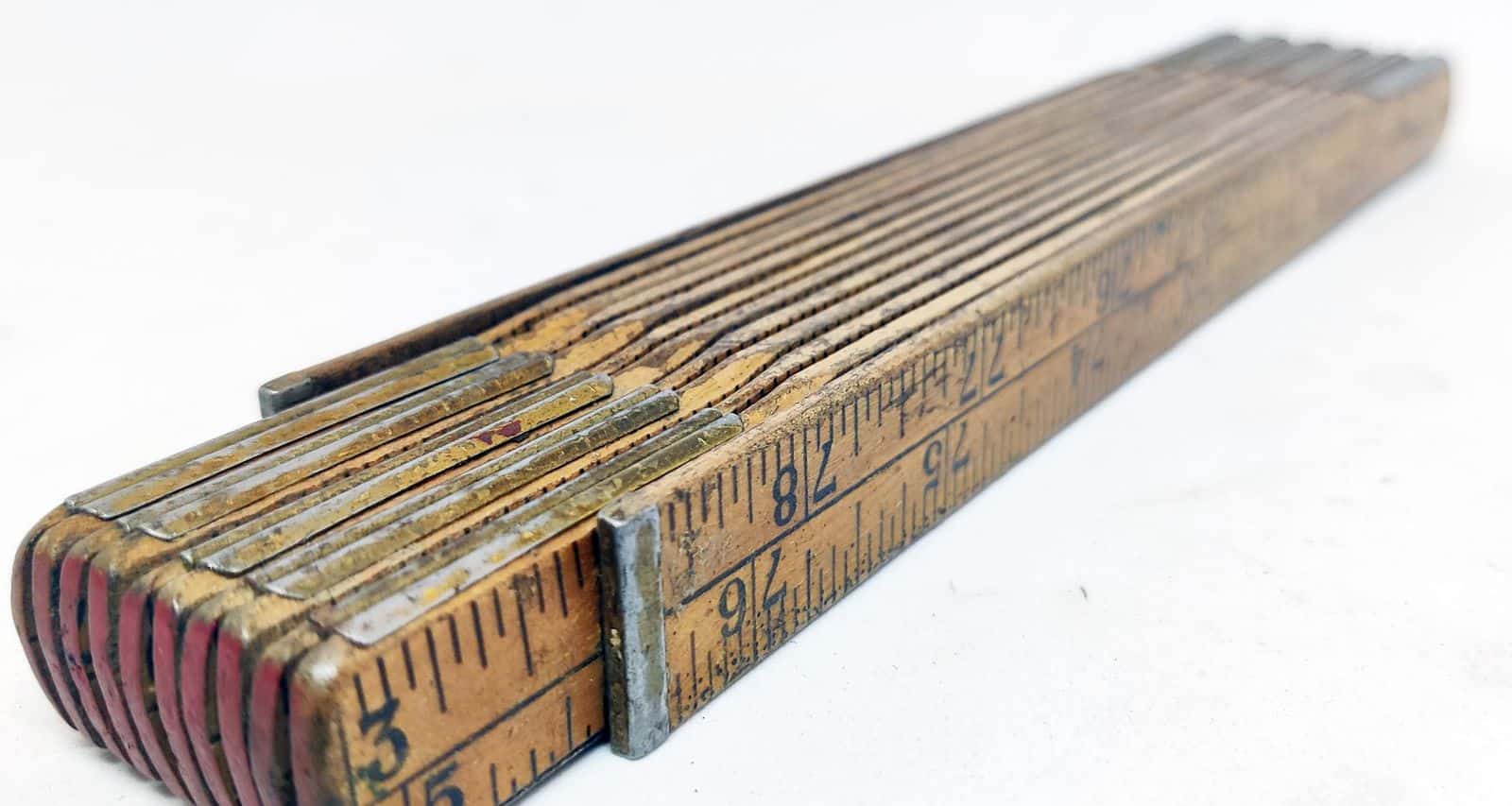 Virkelige lækker gammel tommestok. Reklame for det lokale jern-firma. Utrolig dejlige runde kanter, så ligger unormalt dejligt i hånden.