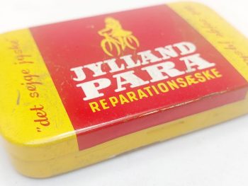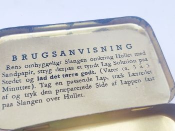 Schiønning & Arve lappgrej. Reparations Æske. Danmark. Blikdåse
