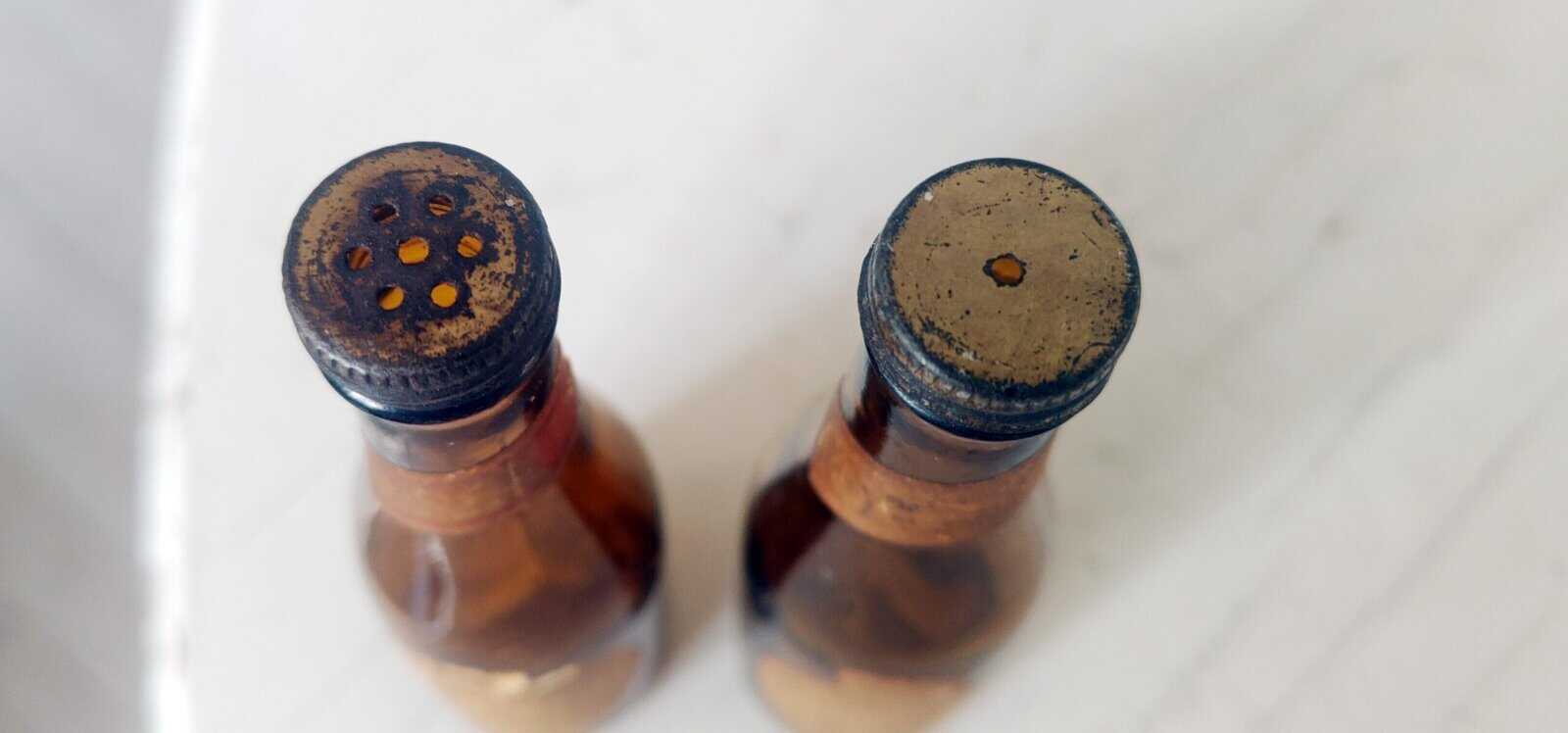 Tuborg og Carlsberg salt og pebber sæt. Glasflasker
