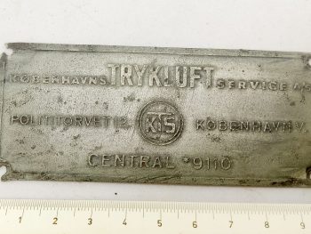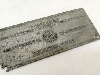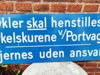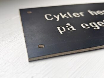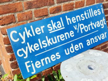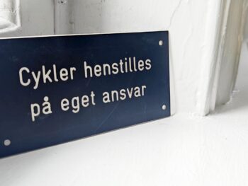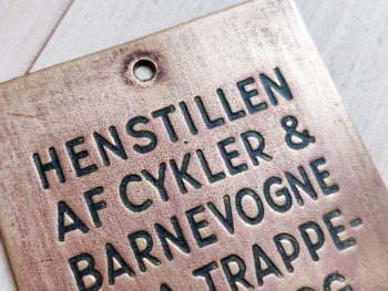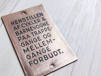 Forbudsskilt i messing. Henstilling af cykler & Barnevogne paa trappe-gange og mellem gange forbudt