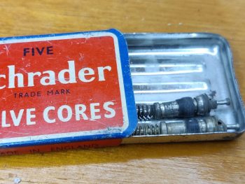 Cykelventiler. Five Schrader Valve Cores (blikdåse. 2 stk tilbage)