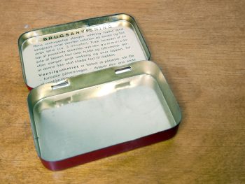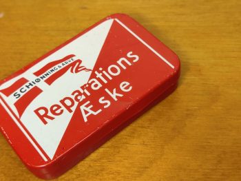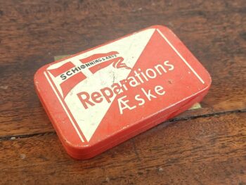 Schiønning & Arve lappgrej. Reparations Æske. Danmark. Blikdåse